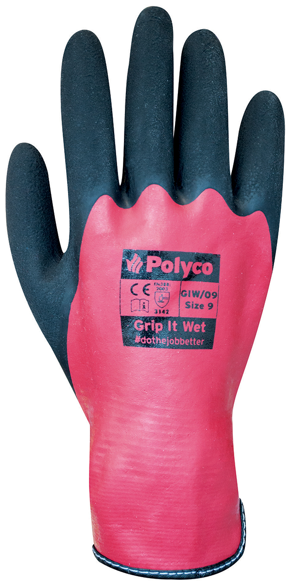 This is Grip It Red General Purpose Nylon Latex-Coated Reusable Gloves 8 manufactured by BM Polyco. The manufacturer part number is GIW/08.