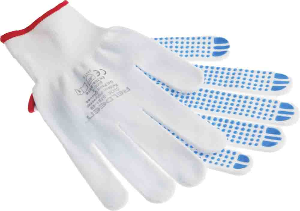 This is White Polyester PVC Dot Grip Gloves Size 9 Large 2 Gloves manufactured by Reldeen. The manufacturer part number is G781-09.