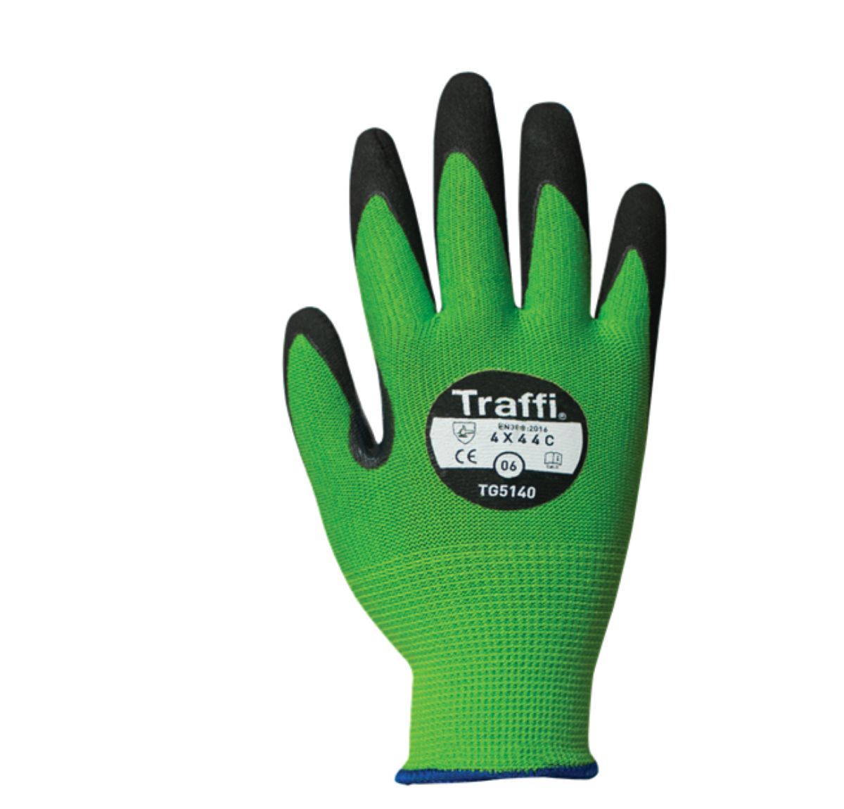This is Green Nitrile Nylon Cut Resistant Cut Resistant Gloves Size 8 Nitrile Coating manufactured by Traffi. The manufacturer part number is TG5140-08.