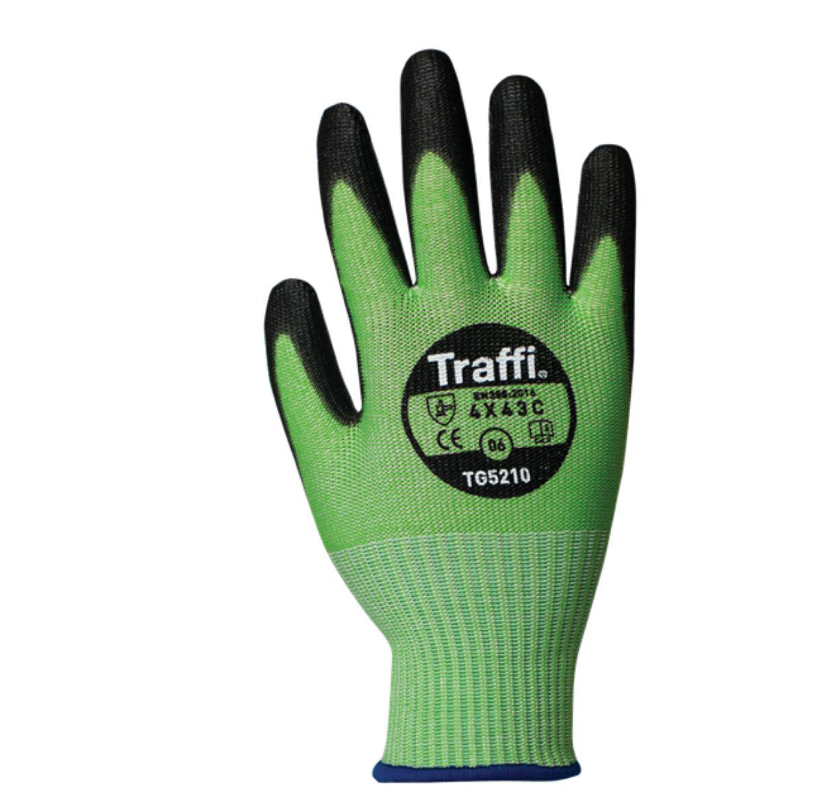 This is Green Cut Resistant Cut Resistant Gloves Size 8 Polyurethane Coating manufactured by Traffi. The manufacturer part number is TG5210-08.