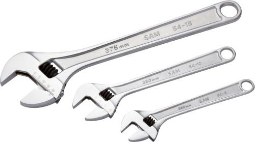 This is Adjustable Spanner 203.2 mm 254 mm 381 mm Overall Length manufactured by SAM. The manufacturer part number is 54-J3N. A quality product with a nice chrome finish. The product is made from highly stable and reliable chrome.