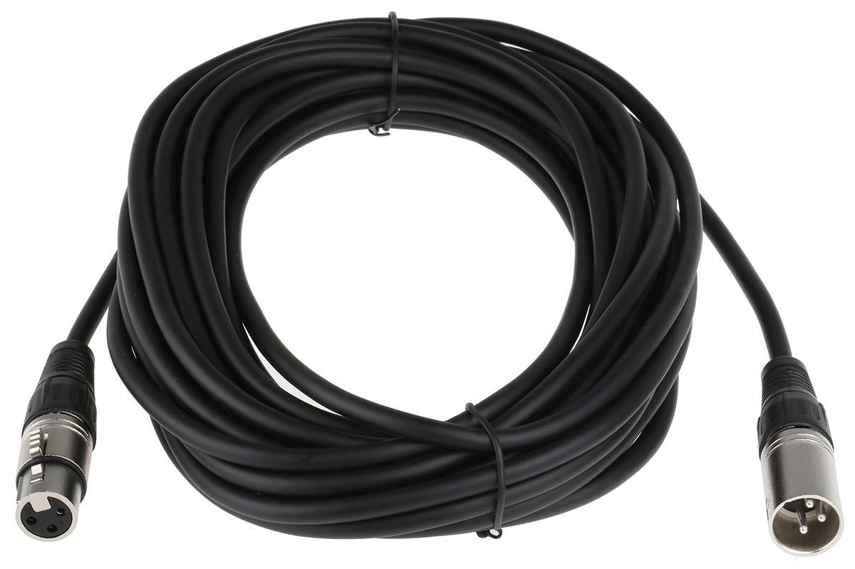 This is 10m Black Female XLR to Male XLR Audio Video Cable Assembly manufactured by RS Pro. The manufacturer part number is 742-4517. Its accurate length is 10m.