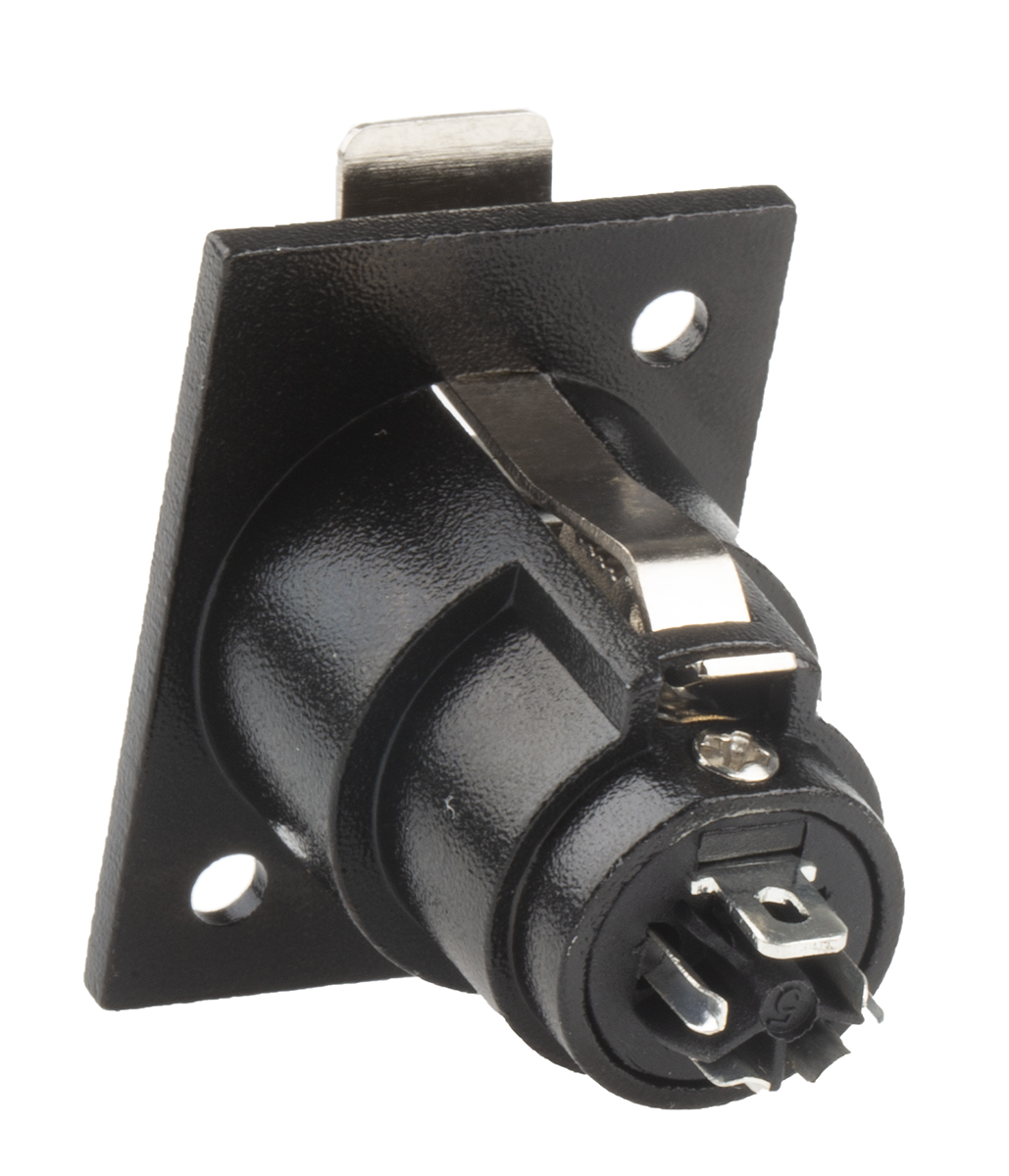 This is 4 Way Panel Mount XLR Connector Female Silver Plated Contacts manufactured by RS Pro. The manufacturer part number is 457-954. The product is available in panel mount configuration. In addition, female is the available "Gender" of the product. The product also features robust zinc housing material. The product contains 4 contacts. The product is made from sturdy brass materials.