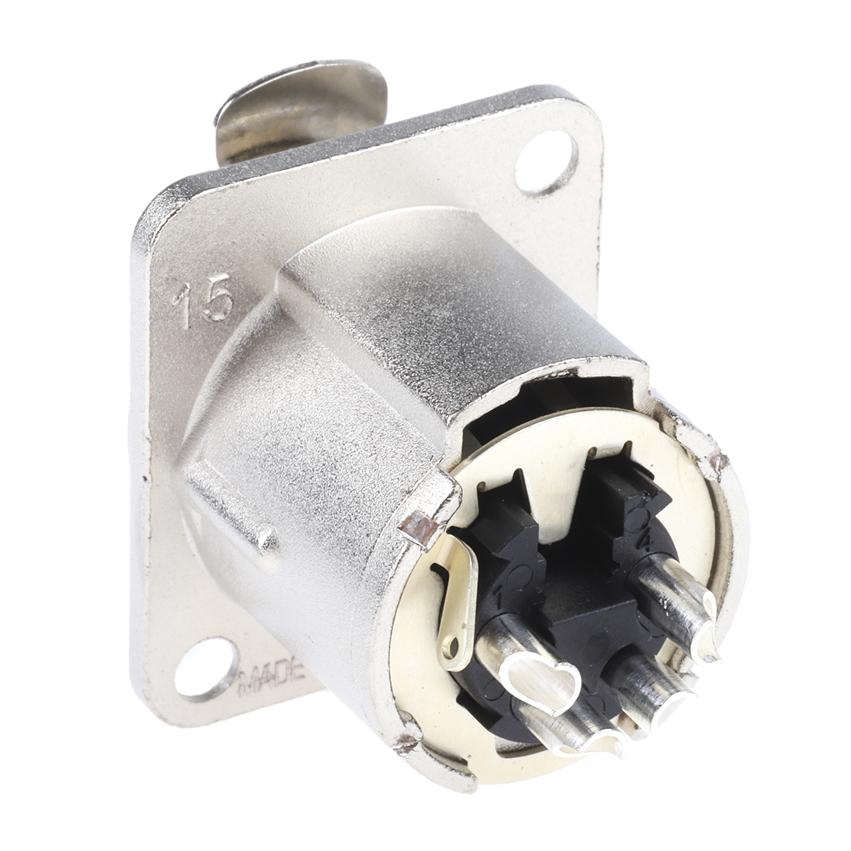 This is 4 Way Panel Mount XLR Connector Female Silver over Nickel Plated Contacts 50 V manufactured by Neutrik. The manufacturer part number is NC4FD-LX. The product has a current rating of 10a. Whereas, the minimum operating temperature of the product is -30°c. The product is available in panel mount configuration. Moreover, the product has a nominal 50 v voltage rating. In addition, female is the available "Gender" of the product. The product also features robust nylon housing material. The product contains 4 contacts. It has a maximum operating temperature of +80°c. The product is made from sturdy brass materials.