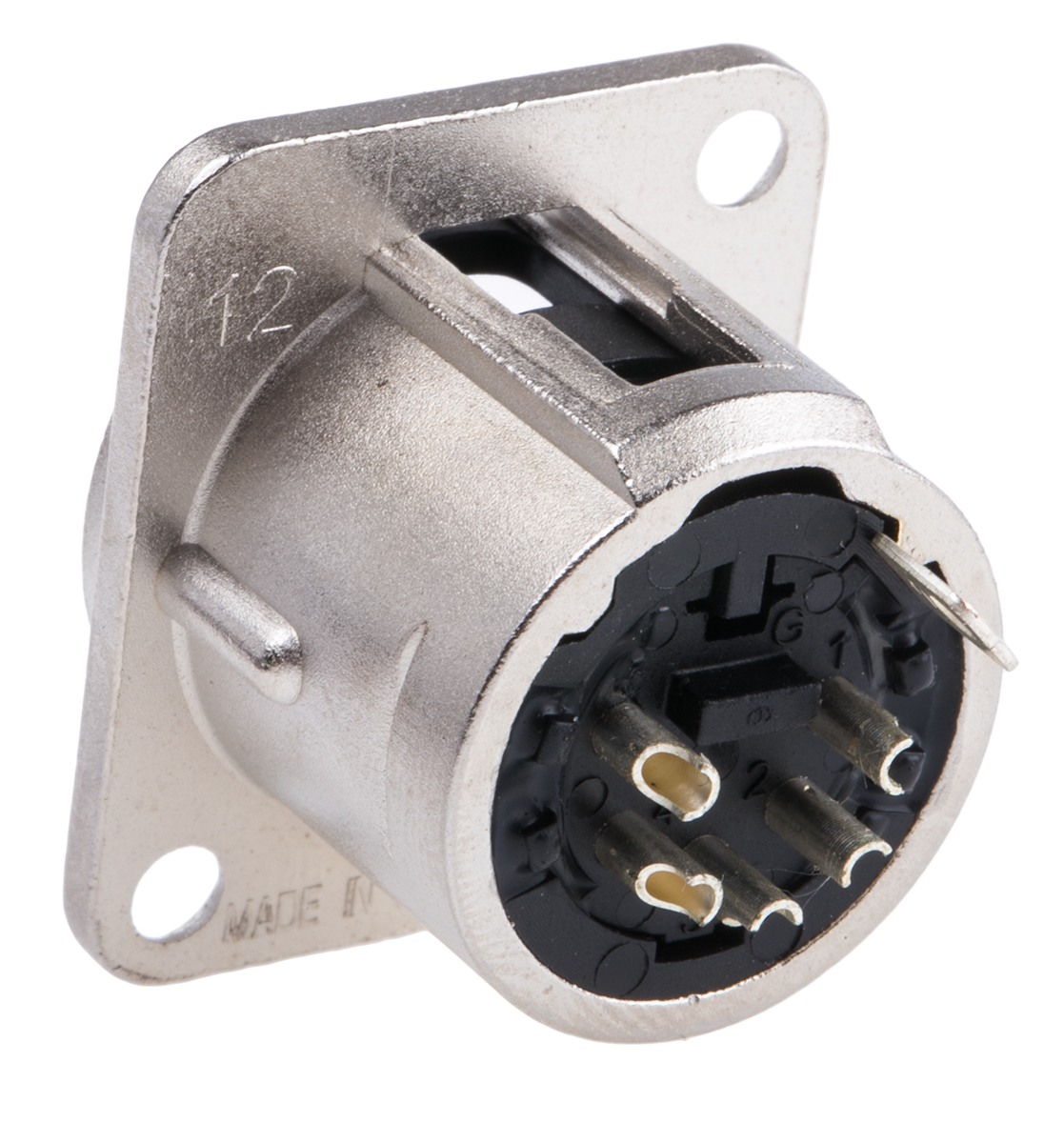 This is 5 Way Panel Mount XLR Connector Male Silver over Nickel Plated Contacts 50 V manufactured by Neutrik. The manufacturer part number is NC5MDL1. The product has a current rating of 7.5a. Whereas, the minimum operating temperature of the product is -30°c. The product is available in panel mount configuration. Moreover, the product has a nominal 50 v voltage rating. In addition, male is the available "Gender" of the product. The product also features robust zinc housing material. The product contains 5 contacts. It has a maximum operating temperature of +80°c. The product is made from sturdy brass materials.