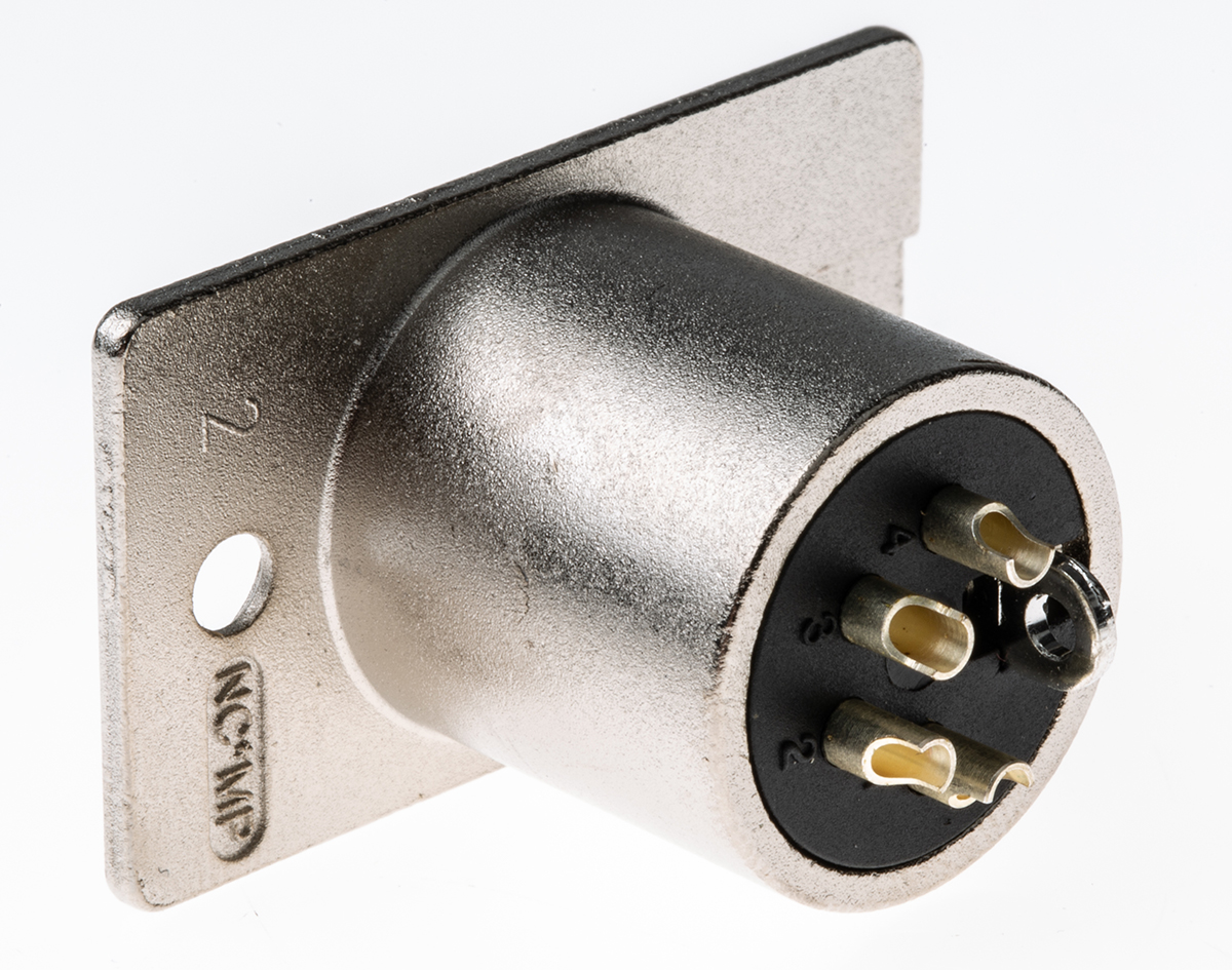 This is 4 Way Panel Mount XLR Connector Male Silver over Nickel Plated Contacts 50 V manufactured by Neutrik. The manufacturer part number is NC4MP. The product has a current rating of 10a. Whereas, the minimum operating temperature of the product is -30°c. The product is available in panel mount configuration. Moreover, the product has a nominal 50 v voltage rating. In addition, male is the available "Gender" of the product. The product also features robust zinc housing material. The product contains 4 contacts. It has a maximum operating temperature of +80°c. The product is made from sturdy brass materials.