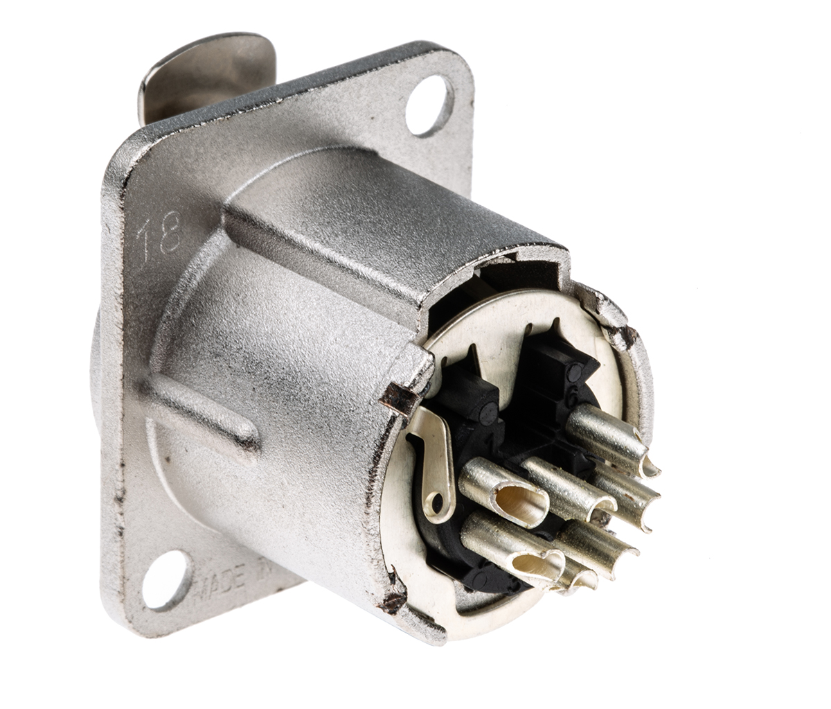 This is 7 Way Panel Mount XLR Connector Female Silver over Nickel Plated Contacts 50 V manufactured by Neutrik. The manufacturer part number is NC7FD-LX. The product has a current rating of 5a. Whereas, the minimum operating temperature of the product is -30°c. The product is available in panel mount configuration. Moreover, the product has a nominal 50 v voltage rating. In addition, female is the available "Gender" of the product. The product also features robust nylon housing material. The product contains 7 contacts. It has a maximum operating temperature of +80°c. The product is made from sturdy brass materials.