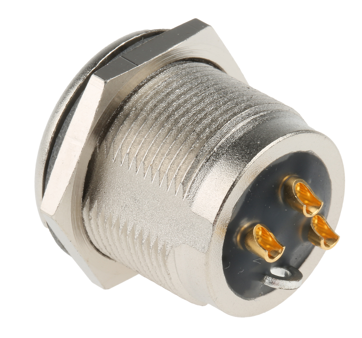 This is 3 Way Panel Mount XLR Connector Male Gold over Nickel Plated Contacts 50 V ac manufactured by Neutrik. The manufacturer part number is NC3MPR-HD. The product has a current rating of 16a. Whereas, the minimum operating temperature of the product is -30°c. The product is available in panel mount configuration. Moreover, the product has a nominal 50 v ac voltage rating. In addition, male is the available "Gender" of the product. The product also features robust nylon housing material. The product contains 3 contacts. It has a maximum operating temperature of +80°c. The product is made from sturdy brass materials.
