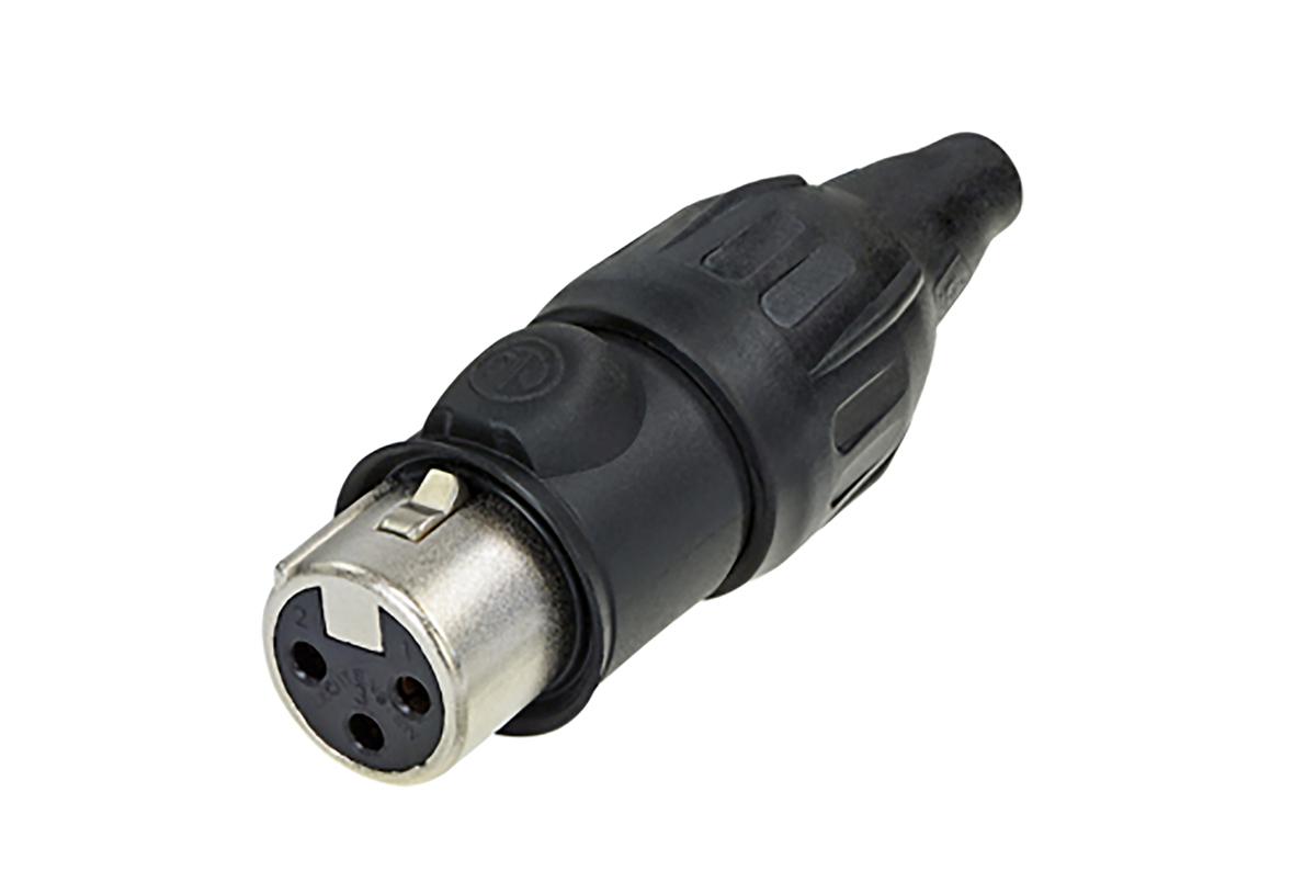 This is Female 3 pin Heavy-dut manufactured by Neutrik. The manufacturer part number is NC3FX-TOP. The product has a current rating of 8.3a. Whereas, the minimum operating temperature of the product is -30°c. The product is available in cable mount configuration. Moreover, the product has a nominal <50 v voltage rating. In addition, female is the available "Gender" of the product. The product also features robust zinc die cast (shell) housing material. The product contains 3 contacts. It has a maximum operating temperature of +80°c. The product is made from sturdy bronze materials.