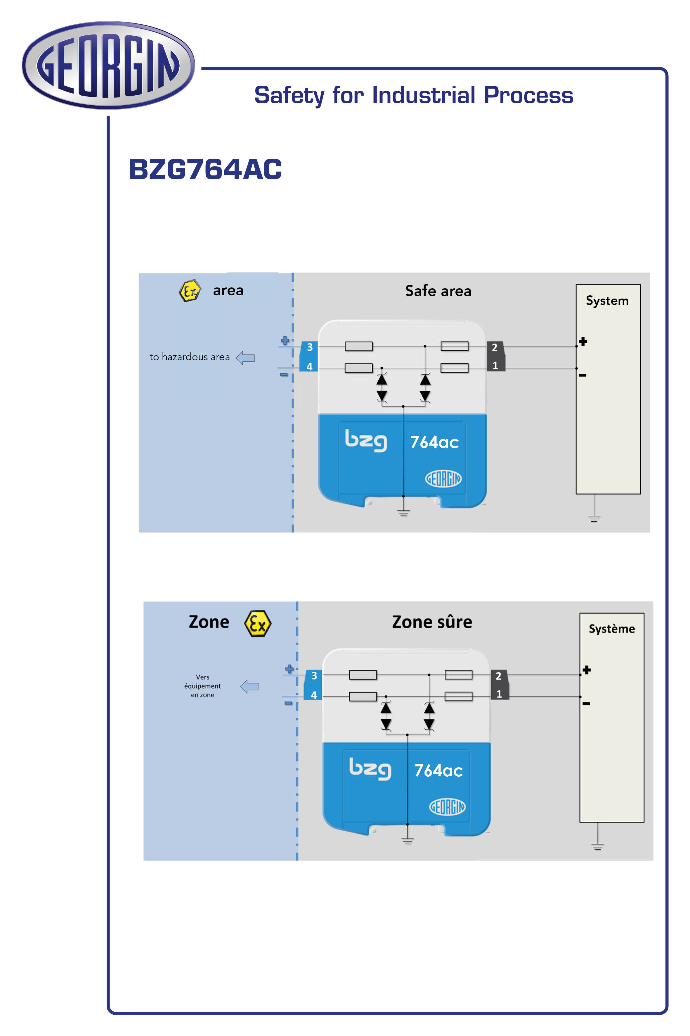 This is Zener Barrier manufactured by GEORGIN. The manufacturer part number is BZG764AC. The product bzg, is a highly preferred choice for users. It is a zener barrier barrier. It is supplied with 1 channels. Whereas, the minimum operating temperature of the product is -20°c. It has a maximum operating temperature of 60°c.